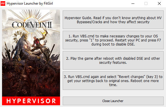 Run “VBS.cmd” in the game folder – you might want to download fresh version here: https://fitgirl-repacks.site/hypervisor-guide/
